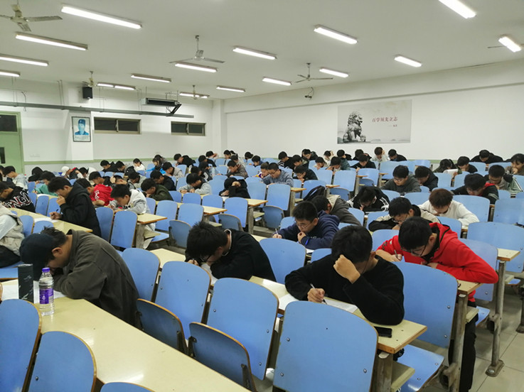 竞赛通知一经发布,便收获了同学们的热情响应。考试开始,整个考场座无虚席,同学们答题认真,不想有一丝纰漏,每个人似乎都铆足了劲。考场秩序井然,没有交头接耳,抄袭舞弊等现象。经过接近一个小时的考试后,同学们陆续交卷。