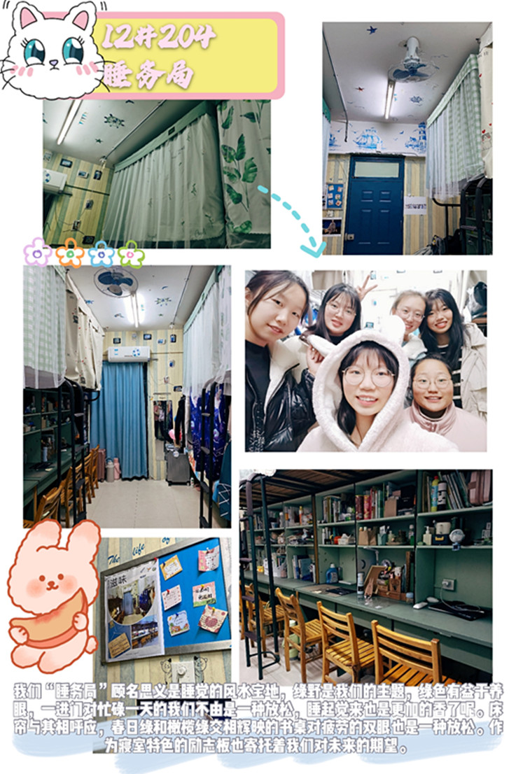 为更好的展现寝室舒适的生活氛围及良好的育人环境,学院学生会工作人员、各班级生活委员、寝室长等提前就发起动员,策划宿舍的改造与装扮工作。宿舍成员们热情满满,各定主题,凸显自己的特色,充分表达对这个“小家”的热爱。