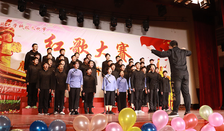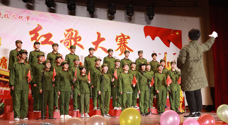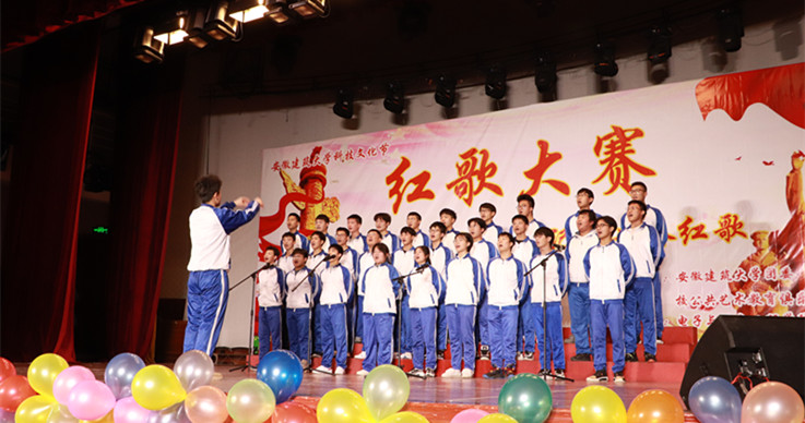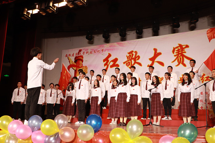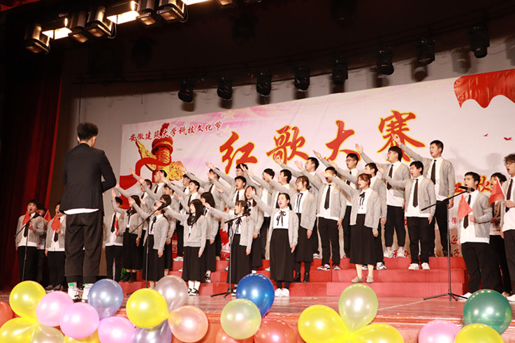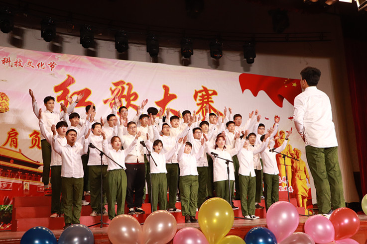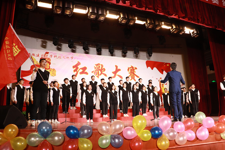 比赛在主持人的热情洋溢的开场中拉开帷幕,13个参赛班级依次上场,同学们站在舞台中央放声高歌,嘹亮的歌声是他们自信与赤诚的写照,自信的神情展现出良好的精神风貌。为了更好的呈现表演,伴随着歌声,手拿着小红旗随旋律挥舞,或加入声情并茂的朗诵,博得了观众热烈的掌声。每一首歌曲的精彩展现都是同学们刻苦练习数日的结果,比赛的顺利进行也离不开每一位工作人员的努力和学院的大力支持。
