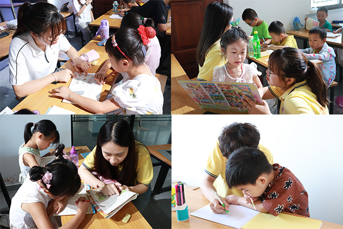课程过程中,志愿者们带来了一堂堂生动形象,精彩丰富,风趣幽默的课程和活动,课堂氛围热烈。孩子们表现活跃,在课堂上踊跃发言,争先参与各项互动环节。美术课上,孩子们积极参与,画出了一幅幅优秀作品:威严耸立的天安门、迎风飘扬的五星红旗、振翅飞翔的和平鸽等,以此献礼建党一百周年。同时,志愿者们与学生家长也保持了良好的互动,得到了家长们的一致好评和肯定。
