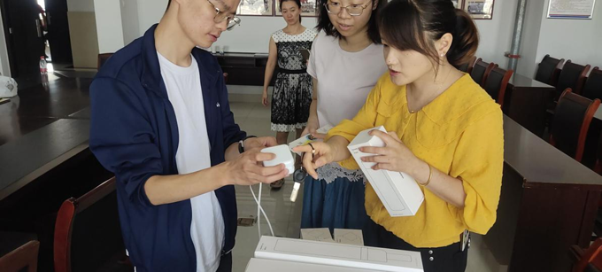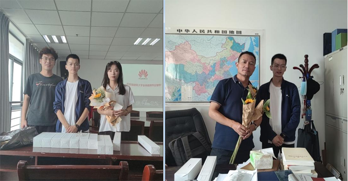 本次活动由学院联合安徽花粉高校俱乐部为各位教师带来节日祝福,学院17届毕业生校友周登波代表花粉高校俱乐部联合华为手机卖场为学院教师们开展手机、智能手表、平板贴膜、消毒,并为老师们赠送精美的贺卡、鲜花和伴手礼。