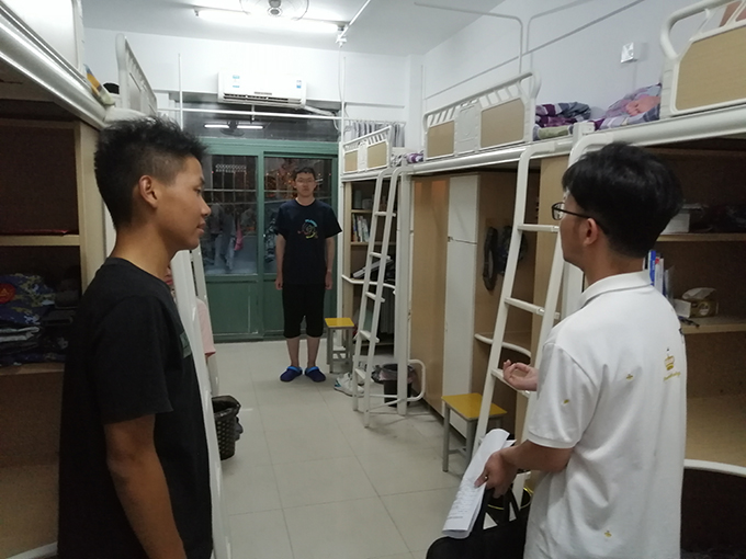 在走访中,辅导员对每间新生宿舍进行深入访谈,详细了解每位同学近期的生活状况,对饮食住宿等方面的诉求等,同时针对近期开展的军训、入学教育、贫困生认定、四六级报名和运动会等活动与新生同学们进行面对面的交流与解读,勉励同学们之间要多交流沟通,互学互助,提前熟悉校园环境,养成良好的学习生活习惯,做好个人规划。