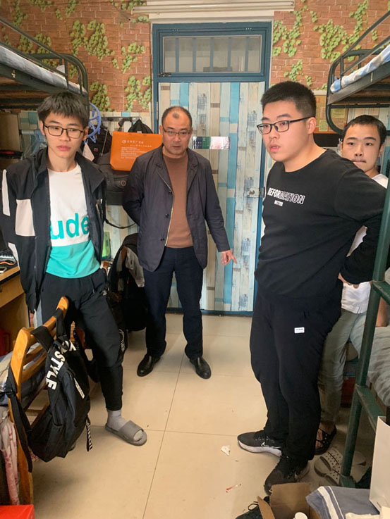 学院党委副书记孙长城带领各年级辅导员们逐个楼层进行走访,详细了解每位同学近期的生活学习状态,查看宿舍有无使用违规电器现象,积极宣传卫生防疫及防火防电信诈骗等知识,对安全和卫生优秀的宿舍给予表扬,对查出问题的宿舍和学生及时批评教育。