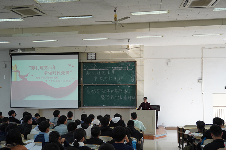 本网讯 为深入学习贯彻习近平总书记关于青年工作的重要论述,切实增强广大团员青年的团员意识和综合素质,凝聚团支部力量,加强团支部的组织建设和思想建设,电信学院团委于11月19日在南校区主教楼1411举办2021年第50期团课暨“青马工程”培训班,全院近330名学员参加本期培训。