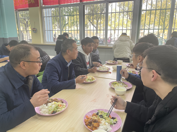 到达食堂后,闵杰和同学们一起端着餐盘排队打饭,就餐氛围轻松融洽。他与同学们从食堂的餐品聊起,关切的询问同学们在校的学习生活情况。在询问了大家的专业背景和学习经历后,闵杰还就课程安排、实验设备升级、智慧校园建设、学业规划等方面与同学们深入谈心。没有了讲台上下或办公室内外的拘谨,同学们畅所欲言,大胆提出在校期间的一些困惑与建议,闵杰耐心倾听并一一解答。就餐过程中,闵杰还和共同就餐的同学互加微信,希望他们能够经常汇报自己的进步,加强沟通交流。