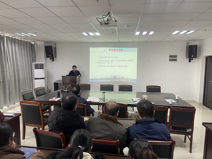 本网讯 1月17日,电信学院召开2021年度教授年度工作述职评议会议,校督导员方潜生教授及学院8名教授进行现场年度工作述职,全体教职工参会。