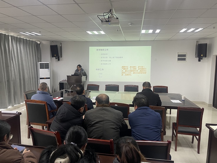 方潜生教授带头从立德树人、教学工作及成果、科研工作及成果、青年教师与学生培养等4个方面将个人年度工作向全体教工进行了汇报。学院其他正高级岗位教师就个人年度工作依次述职。