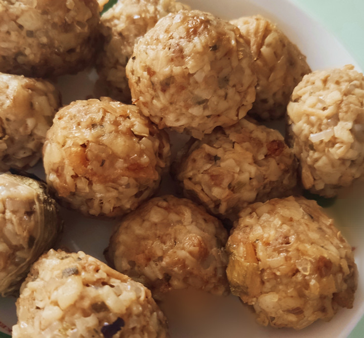 蒸好的圆子松软又有弹性,口味一般也只做咸口,并且制作方式和食材选择都比较健康,是一种老少皆宜的主食替代品。