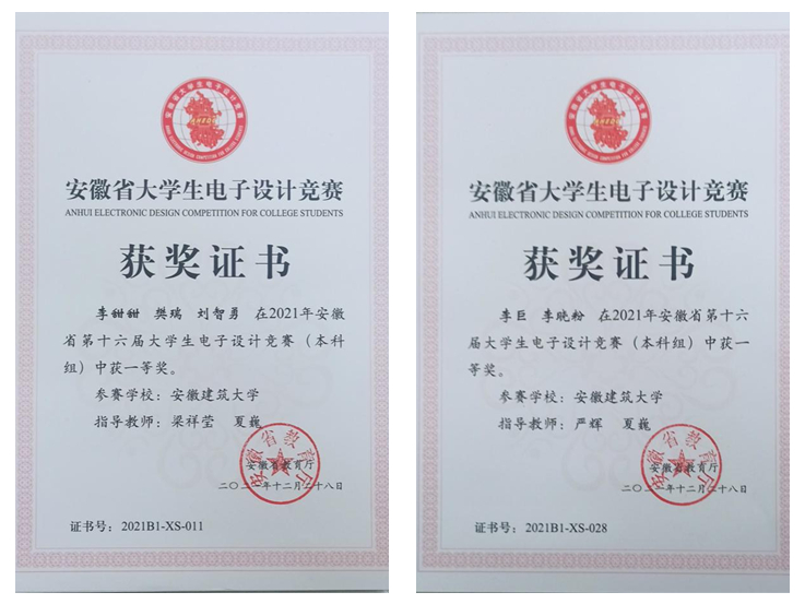 本网讯 近日,由教育部和工业和信息化部主办的全国电子设计大赛成绩公布。电信学院夏巍、梁祥莹老师指导的樊瑞、李甜甜、刘智勇团队在全国比赛中斩获二等奖。同时,学院学生在安徽省赛区也获得佳绩,由严辉、夏巍老师指导的李巨、李晓粉团队和梁祥莹、夏巍老师指导的李甜甜、樊瑞、刘智勇团队均获得安徽赛区一等奖;由陈杰、梁祥莹老师指导的汪震、王玉杰、刘元昊团队获得安徽赛区三等奖。