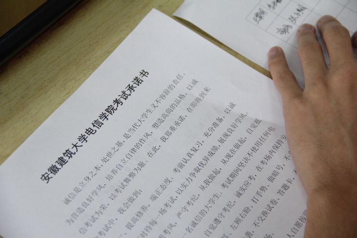 此外,各个班级下发诚信考试承诺书,引导学生认真仔细阅读相关条款,并庄严承诺、郑重签名。