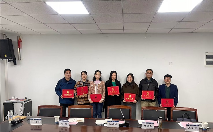 学院党委书记孙长城宣读学院2022年度科研工作先进个人名单。赵强副处长和陈建利副处长为学院2022年度科技工作先进个人颁发了奖励证书。先进个人代表邵慧、孙光灵、颜普、窦艳四位老师分别结合自身的科学研究经历,分享了从事科技工作的经验和体会。