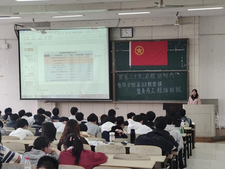 本网讯 为深入学习贯彻党的二十大精神,充分发挥团组织教育青年的功能, 进一步加大对团员青年、团学干部的培养教育力度,培养高素质人才,提升广大青年的道德素质、人文素质、科技水平。近日,电信学院于主教楼1411教室举办了电信学院第53期团校暨“青马工程”培训班。