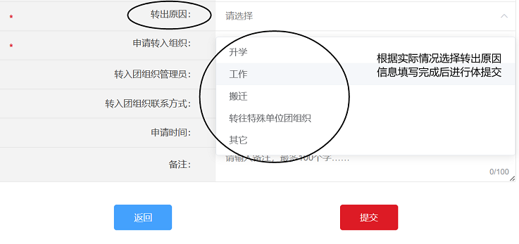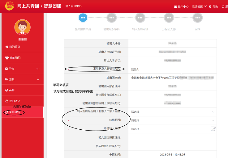 2.1升学:团员本人可在录取学校新生团组织创建后,登录“智慧团建”系统申请将组织关系转出至已录取学校相应团组织。