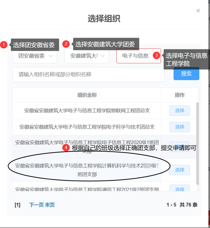 3. 申请转入组织:选择安徽省ku游官方+新生录取学院+新生录取所在专业,例如安徽省ku游官方电子与信息工程学院物联网工程2022级2班团支部。