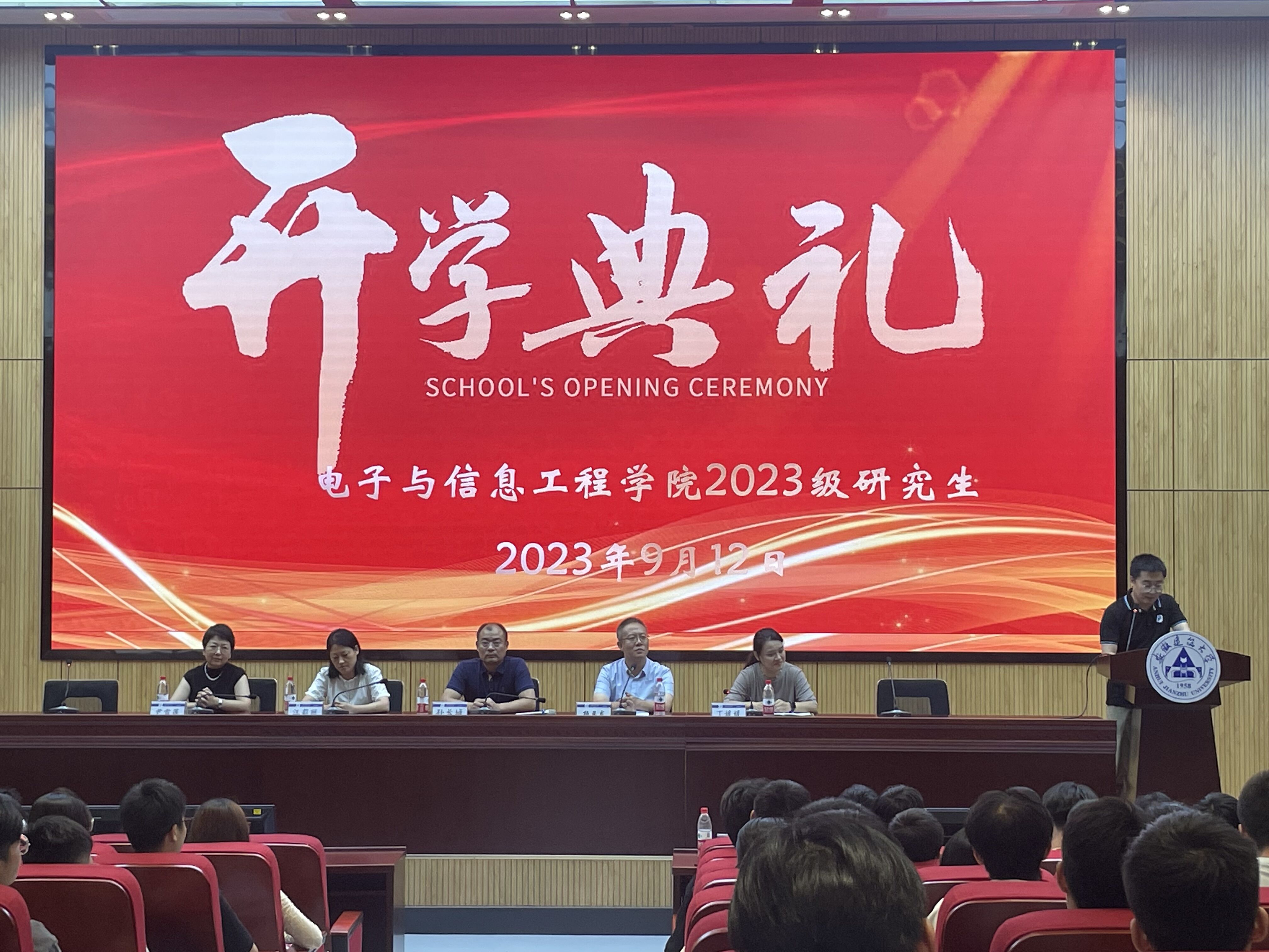 本网讯 9月12日中午,电子与信息工程学院2023级研究生开学典礼在南校区实训综合楼二楼报告厅举行,2023级186名研究生欢聚一堂,翻开人生新的篇章。学院领导班子、研究生导师、辅导员、优秀老生代表出席典礼。典礼由学院党委副书记丁媛媛主持。