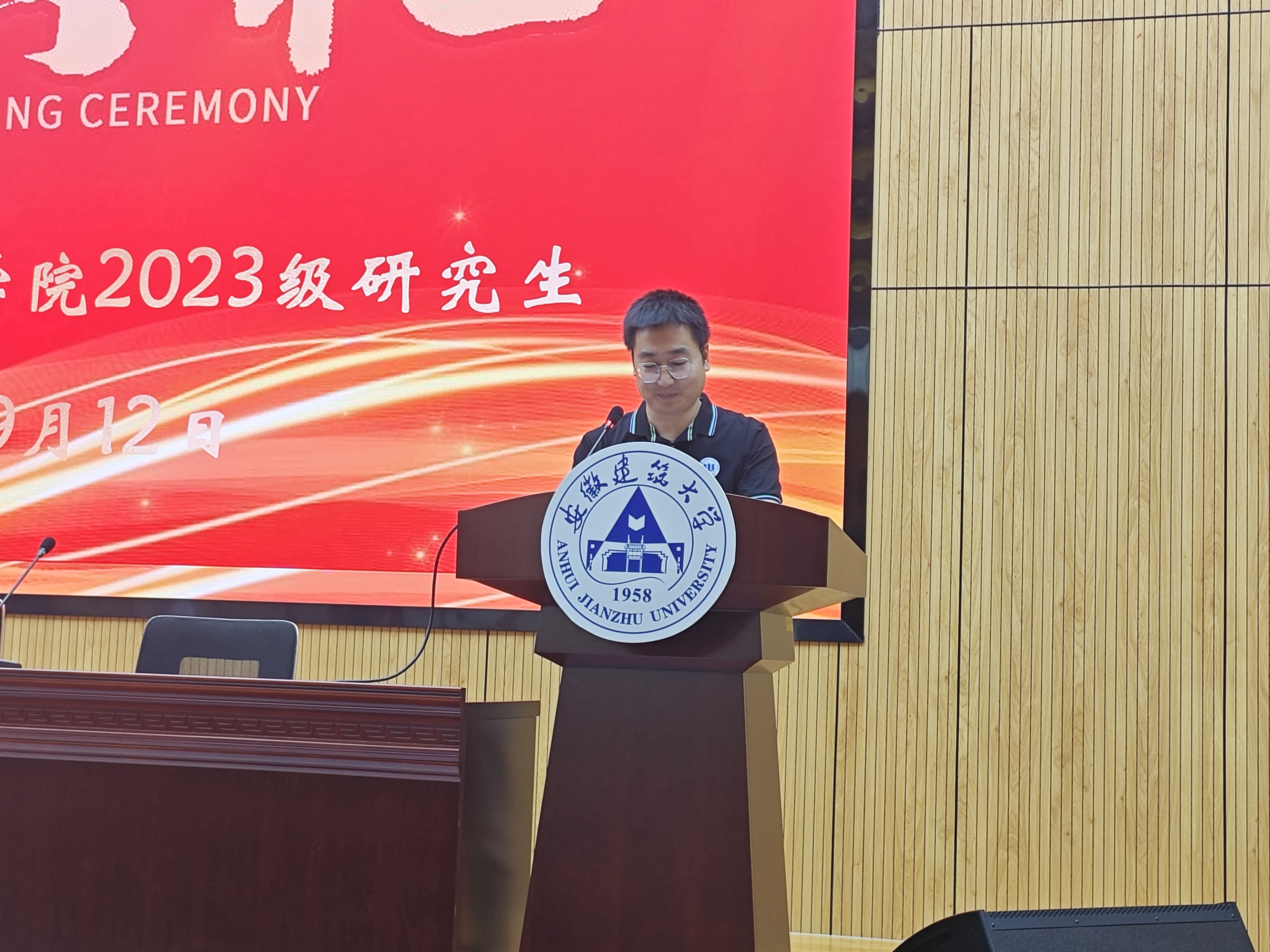 老生代表2021级研究生刘虎同学分享了在建大学习生活的经历和收获,给新生提出两点建议:制定好短期和长期计划;学会学习、持之以恒。精勤求学,在学习研究中提升自身能力,实现人生价值。
