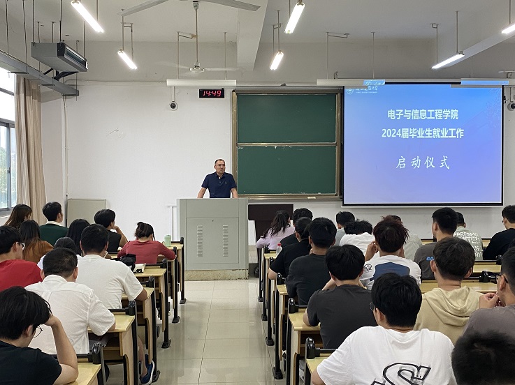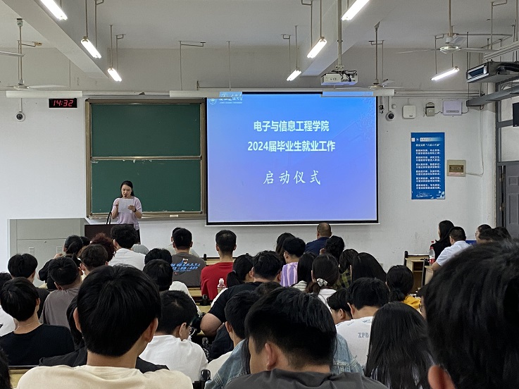 本网讯 9月20日,电信学院2024届毕业生就业工作启动仪式在逸夫楼5102顺利举行。学院党委书记孙长城、党委副书记丁媛媛、毕业班辅导员、2024届部分毕业生及用人单位代表参加了启动仪式,仪式由丁媛媛主持。
