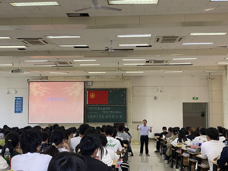 团课第二讲,由马克思主义学院丁贞权老师带领团员青年们回望中国共产主义青年团的百年光辉历程,激励同学们以青春之热血、青春之干劲,肩负起国家民族的希望,与时代同心同向同行。