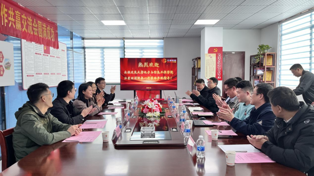 之后举行了产教融合座谈会。安徽芒课科技有限公司董事长蔡先保对电信学院一行表示了热烈的欢迎,详细介绍了近年来公司在学生实习实训、学科竞赛、校企合作、科技创新与成果转化方面所做的工作,希望与学院深入开展产学研合作。电信学院副院长汪莉丽介绍了学院的师资队伍、专业特色等,并结合安徽省十大新兴产业,分析了学院专业建设所面临的机遇与挑战,希望学院能够与芒课教育加强合作,共同探索更多创新的实践教育模式。期望能够提升学生的综合素质和创新能力,让他们在实践中获得更多的经验和技能。