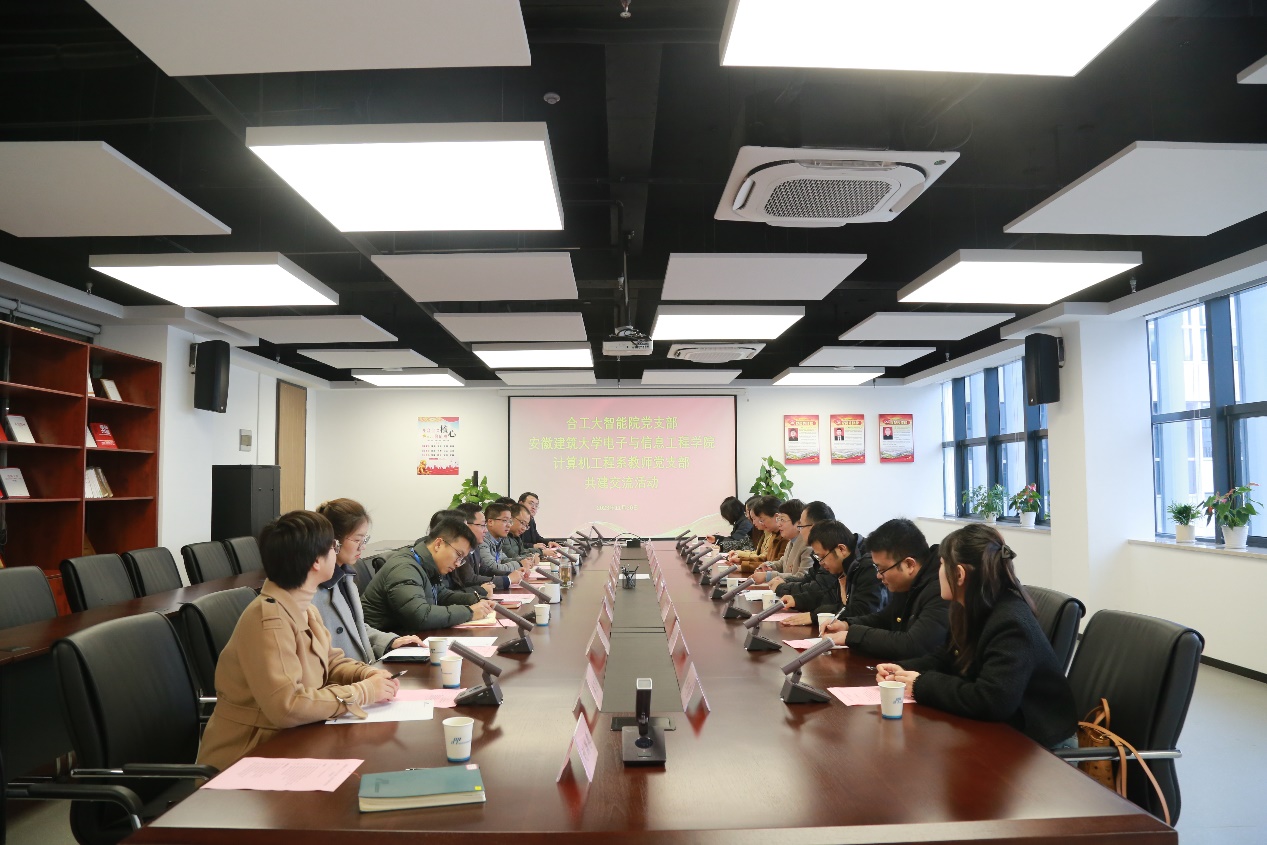 在交流与调研中,智能院副院长彭建刚首先介绍了智能院的发展历史及当前主要业务与发展方向;电信学院党委组织员尹雪莲介绍了学院的党建工作开展情况及取得的成绩;计算机系主任苏亮亮介绍了校企合作项目;中科深谷总经理张钊介绍了中科深谷的历史和发展情况。双方党员代表围绕党建引领、业务实践开展交流研讨,大家一致认为,要把党建根植于业务之中,实现长效融合、深度融合,今后将在思想引领、产研融合、资源共享、人才培养、师资互聘等方面开展全方位合作共建,构建一体化多向互动的新时代育人新格局。