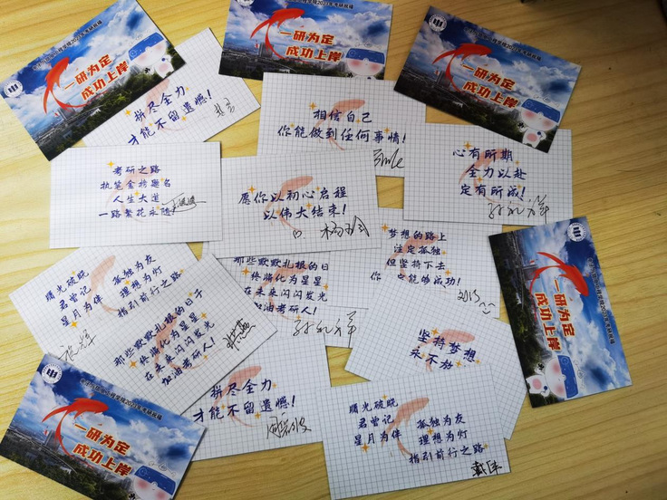 本网讯 2024年全国硕士研究生招生考试即将拉开序幕,电信学院的学子奋笔疾书,终于要迎来收获的季节。为帮助考研学子坚定目标、调整心态、树立信心,电信学院近日组织开展了“情暖助考,一“研”为定”主题考研路上送温暖活动,用心为各位考生献上真挚的祝福。