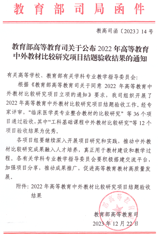 据悉,2022年高等教育中外教材比较研究项目共立项39项,经项目申请、专家评审,36个项目通过验收,其中12个项目验收结果为优秀。(文/图:张鸿恺 审核:孙长城)