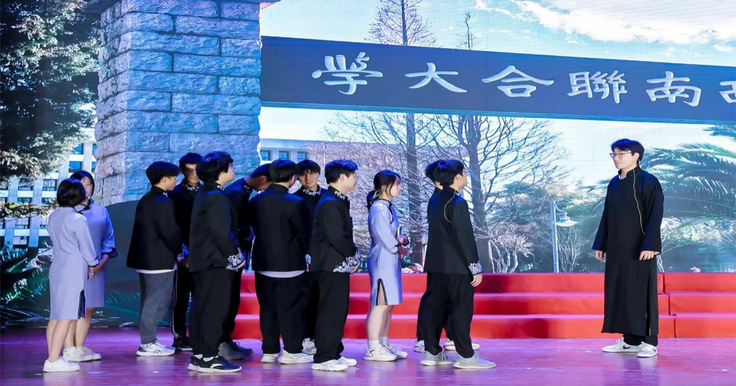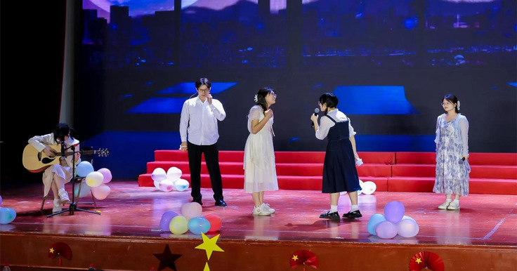 在美育成果展演环节,灯光璀璨,音乐响起,一幕幕扣人心弦的节目接连上演。情景剧《征途中的革命》展现了革命烈士们在革命岁月的英雄气概,他们走心的展示深入人心,让观众们仿佛穿越时光,感受革命先辈的拼搏与牺牲。小品《恰同学少年》以生动的表演展现了中国抗战以来的光辉历程,演员们情感饱满,台词铿锵有力,让观众们对党的光辉历史有了更深刻的理解与感悟。合唱《灯火里的中国》唱响全场,歌声嘹亮动人,每一个音符都传递着爱国情怀。