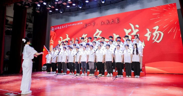 观众席上,师生们情绪高涨,热情洋溢。他们用掌声和欢呼声为每一个参赛班级加油助威,共同感受着红色文化的力量。在歌声中,青春的激情与爱国的情怀交织在一起,每一个音符都是对革命先烈的致敬,更是对祖国的热爱。