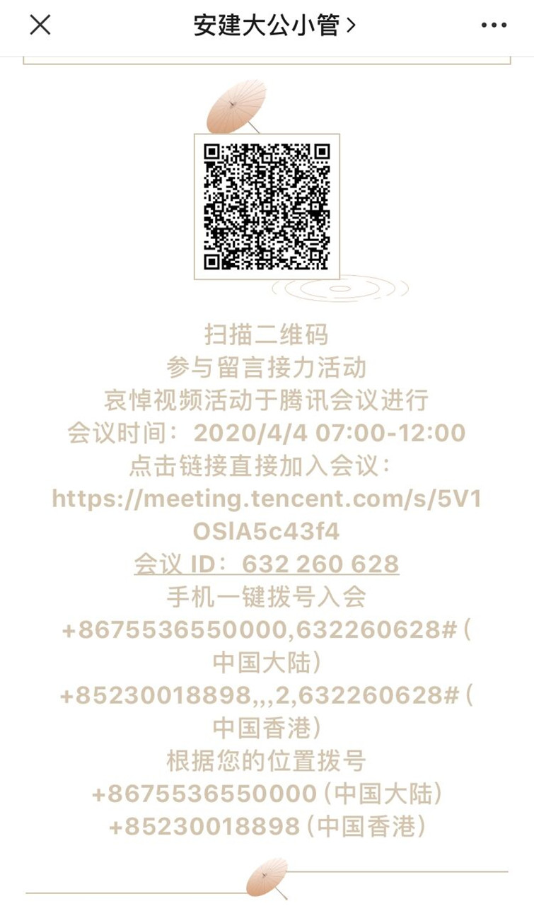 活动最后,公管学子在学院微信公众号“公小管”中留言,寄托自己的哀思。