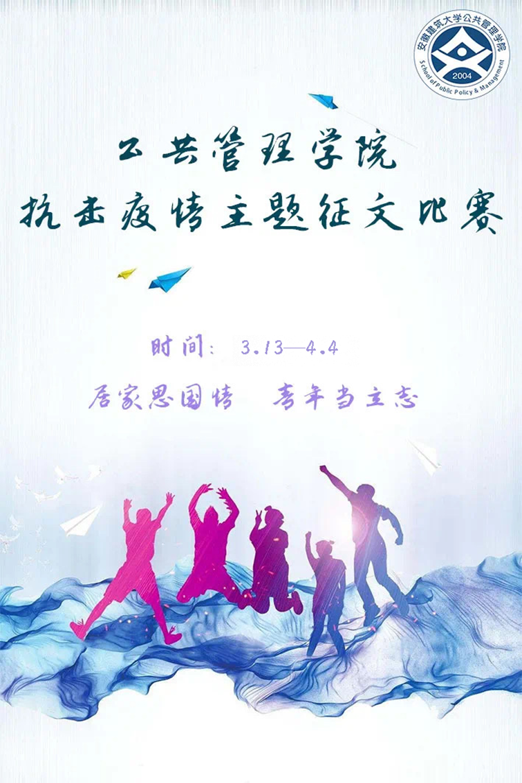 本网讯 为增强青年学子的责任感与使命感,展现青年学生与祖国同呼吸共命运的家国情怀,帮助学生从抗疫“逆行者”中体会大爱,学会感恩,公管学院开展“居家思国情,青年当立志”主题征文比赛。学生们以笔为“援”、以文抗 “疫”,饱含深情的文章表达对祖国美好的祝愿,向抗疫一线英雄们致敬。公管学子踊跃参加,积极投稿,共收到近70篇来自不同年级,不同专业学生的作品,体裁包括散文、诗歌、小说等多种形式。