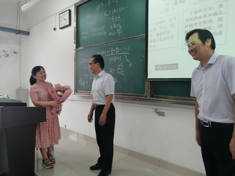 本网讯 三尺讲台育桃李,一支粉笔写春秋。在第36个教师节到来之际,9月10号上午,学院党委书记李道先、院长丁仁船手捧鲜花走进课堂,为正在上课的教师献上美丽的花束和真诚的祝福,感谢他们为学校教学工作做出的贡献。