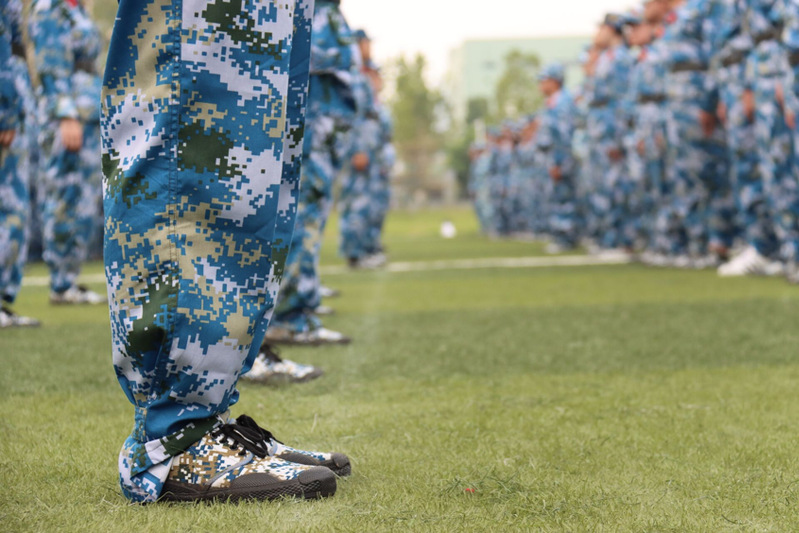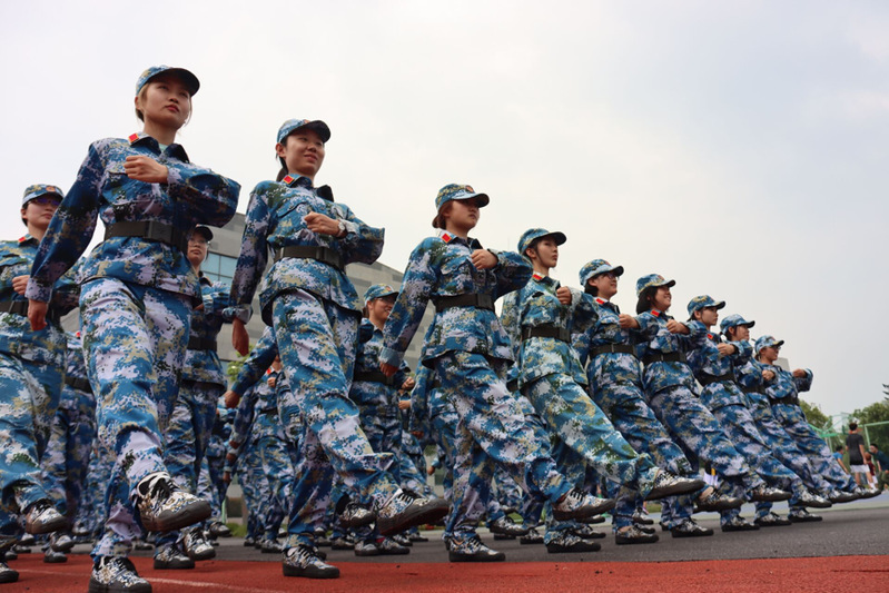 当娇艳的晨曦温暖地抚摸大地,那一抹抹动人的建大蓝从宿舍楼里涌出,汇聚成训练场上的汪洋大海。清晨的微风拂过同学们挺拔的军姿,年轻的面孔不惧骄阳。