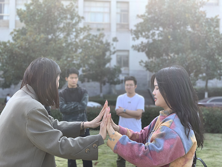 阳光明媚的秋日午后,20级新生辅导员周娅子和周大年两位老师带着同学们来到活动场地。在老师的组织和鼓励下,同学们大方的自我展示,并开展了松鼠搬家、巧解千千结等团辅活动。
