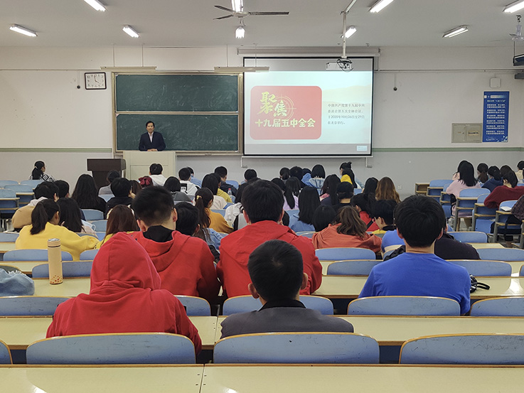 11月18日,在本期培训班最后一课中,公管学院院长丁仁船带领全体学员学习了党的十九届五中全会公报,让学员们对党的路线方针政策有了更加深入的认识,在同学们的热烈掌声中,公管学院第47期入党积极分子秋季培训班圆满结束。