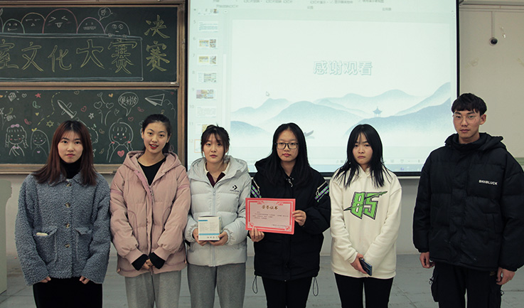 为迎接寝室文化设计大赛,同学们精心设计、巧妙布置,打造出一个个极具特色而又富有内涵的寝室风貌。大赛评比中,学生们通过PPT展示了多姿多彩的寝室风格,无论是“宁静致远阁”的宁静祥和,“海底龙王殿”的妙趣横生;还是“粉雾海”和“乱世佳人”的浪漫风格,都使评委和观众们纷纷喝彩,将比赛推向高潮。穿插中比赛中的成语接龙和你猜我画小游戏,使学生们欢乐无穷,掌声连连。经过激烈角逐,11#418寝室“海底龙王殿”获得第一名,该寝室规范整洁的内务设计、独具特色的设计风格和精彩的现场讲解折服了观众和评委。比赛随着评委颁奖并合影留念落下帷幕。