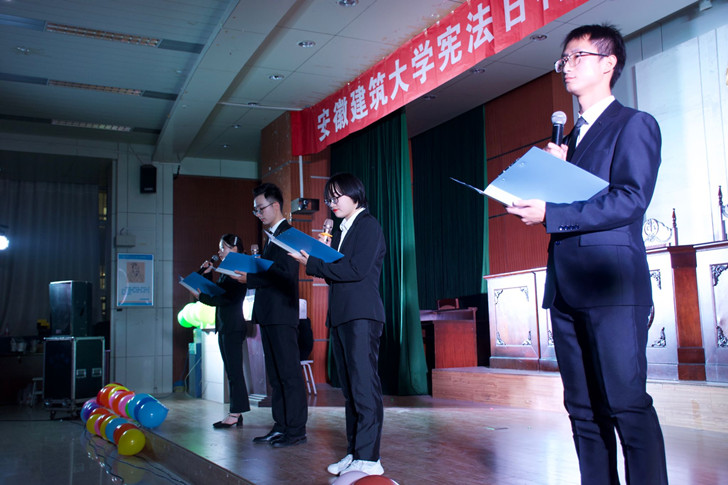 本次活动主题鲜明,内容丰富,有宪法诗朗诵、普法小品、趣味辩论赛等多种学生喜闻乐见的形式。在安徽省“学宪法、讲宪法”大赛中获知识竞赛一等奖、演讲比赛三等奖的陈纪鞍、牛立群等同学带来《宪法之光》诗朗诵,在抑扬顿挫的朗诵声中,学生们深深感受到了中国宪法的庄严肃穆;20级法律协会小萌新演唱的《法律原则之歌》,饱含着崇敬之情,彰显了法律的神圣和伟大;辩论赛中,双方唇枪舌战、你来我往,较强的逻辑思维能力和流畅的语言表达能力征服观众,体现了法律人善于思辨的能力。活动精彩纷呈,台上台下气氛热烈,欢呼连连。