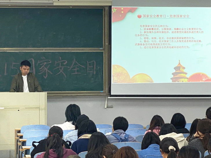 4月14—15日,公管学院辅导员分别在各年级召开国家安全日主题班会,强调了学生树立国家安全观的重要性,引导学生要依法维护自我利益与国家利益,学会对危害社会的行为与思想说“不”。
