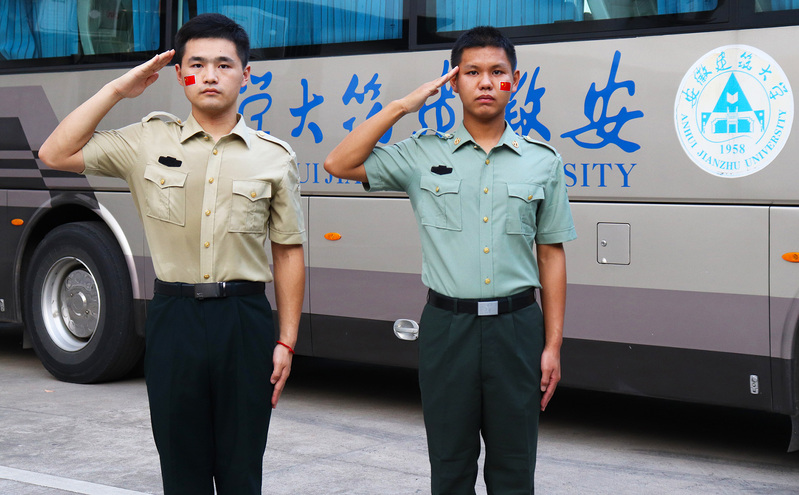退伍大学生代表刘继承和袁勇用标准的军礼合照向祖国致敬,表达了退伍大学生们的拳拳爱国之心。他们坚定的目光仿佛诉说着,青年大学生时刻准备着,等待祖国的召唤,有召必回,用我必胜。