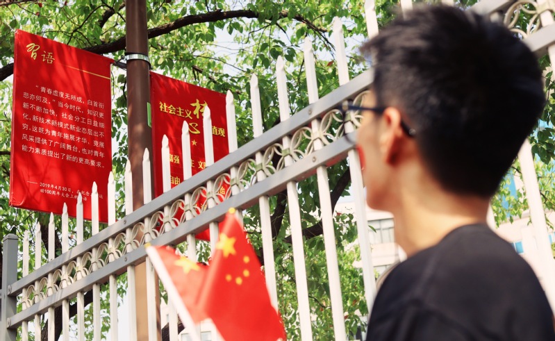“欣望江山千里秀,欢颂祖国万年春”,学生党员代表们,用条幅镌刻对祖国的深情祝福,记录对祖国未来的美好祝愿。幸福灿烂的笑容里,是对祖国繁荣昌盛的赞言,更是继承先辈精神的坚定志愿。