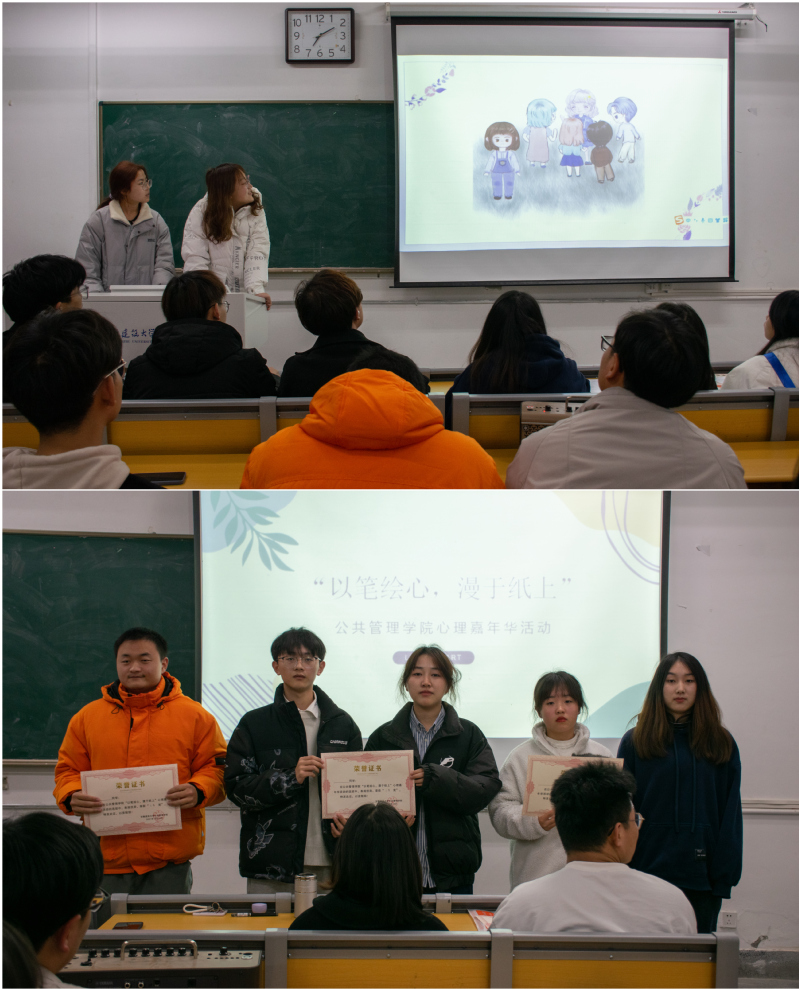 1210日,公管学院于北区F110举办以笔绘心,漫于纸上连环画比赛。本次比赛由参赛选手展示自绘连环画,讲述相关故事及其中寓意和启发,向观众呈现了漫画作品中丰富的创意灵感和心灵启迪。一幅幅生动有趣的绘画将大家带入故事世界,在一段段感悟中获得心灵的成长与洗涤。《好学不倦》《今夕何夕》《绿色的梦》等作品中我们认识到学无止境、活出风采、珍惜当下以及保护生态环境的重要性;《陪伴》《长大》《此花开尽更无花》中我们感受到陪伴的温暖、爱情的纯真以及生命的伟大。经过激烈的角逐,胡玉龙、钟莹凭借在《今夕何夕》中真情流露的讲述、舒缓的背景音乐及优秀的绘画功底荣获一等奖。