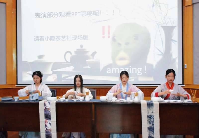竹雨松风琴韵,茶烟梧月书声。中国传统茶文化源远流长、博大精深。本届国学文化节中,小隐茶艺社开展茶艺教学活动带领学生了解茶的历史、茶的分类、茶具的认识与选择、取用器具手法、温具手法等茶文化知识,带领学生品茶香,习茶礼,论茶艺,行茶道,传承中华茶韵。