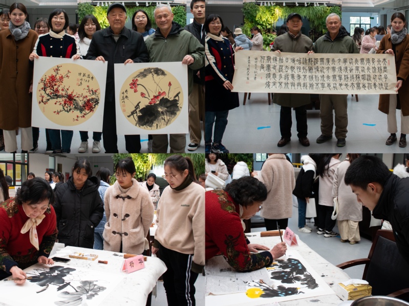 一幅幅书法作品或苍劲雄浑、洒脱奔放,或淡雅醇厚、行云流水。一张张国画作品或写实、写意、淡雅恬静,尽展笔墨神韵。活动结束后,书法家们将“金榜题名”、“平安喜乐”、“万事顺遂”等字画作品赠予学生,学生既学习了历史知识,感受到了中国书法与国画艺术的独特魅力,更收获了祝福和感动。