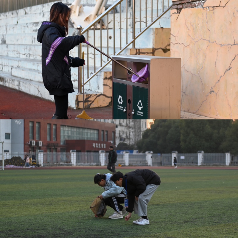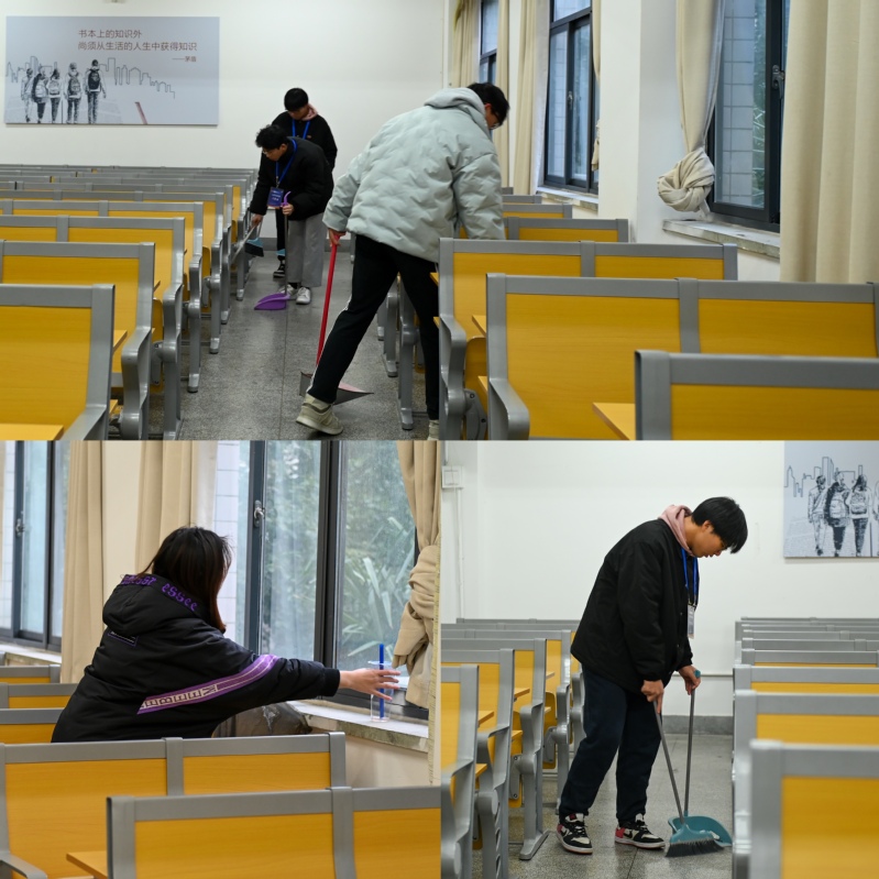 活动中,学生纷纷拿起扫帚、拖把、抹布等劳动工具,扫地拖地,打扫教学楼,清理校园垃圾。寒风萧萧,但同学们的劳动热情却丝毫不减。大家分工有序,相互配合,一间间教室和北区操场在同学们的辛勤劳动下逐渐变得更加干净、整洁。活动结束后,同学们纷纷表示腰很酸,背很痛,但当看到自己的劳动成果后,脸上尽是喜悦和自豪。