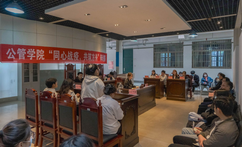 以辩明理,以论求真。为积极配合学校防疫工作,切实发挥团学组织在校园文化建设与价值引领中的重要作用,3月24日下午,公管学院团委结合学科专业特点,法律协会、辩论协会举行“ 同心战‘疫’共筑方舟”辩论赛,锻炼学生逻辑思维能力和语言表达能力,引导学生理性看待校园疫情防控举措,创造积极向上、辩证客观的思想氛围。孙道胜深入活动现场,在学生慷慨激昂的辩论对决中感受青年学子们的青春战“疫”力量。