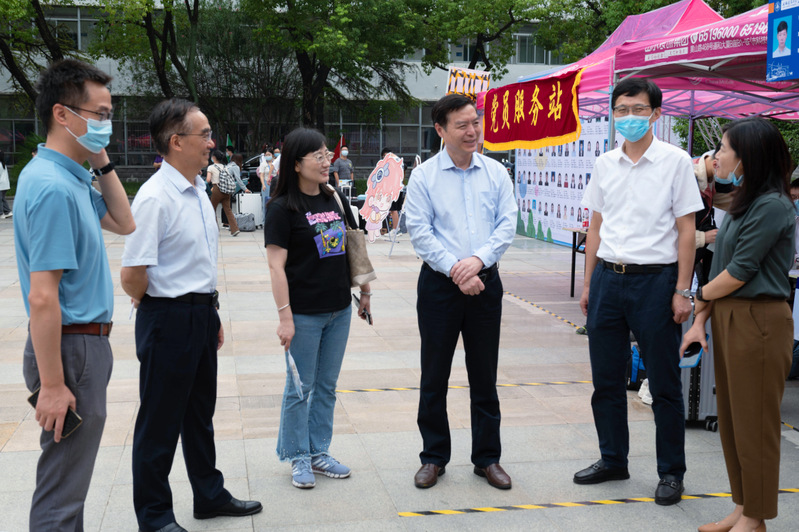迎新期间,校党委书记孙道胜、校长黄显怀、学院领导班子成员来到新生接待点,看望工作人员,鼓励大家以饱满的热情和昂扬的斗志,服务好新同学,帮助他们快速融入ku游官方公共管理学院的大家庭。