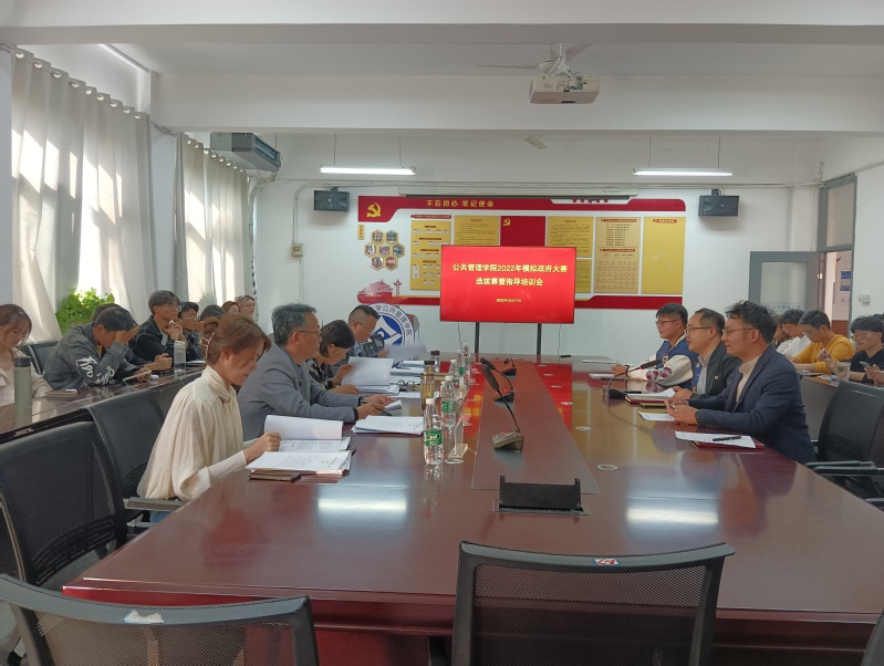 本网讯 为增强学生实践能力,营造创新创业氛围,提升专业培养质量,公管学院于2022年10月17日下午在北校区F楼南楼209组织开展2022年安徽省高校“模拟政府”大赛选拔赛暨指导培训会。副院长连瑞瑞主持会议,相关指导老师与参赛同学参加活动。