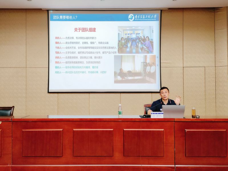 本网讯 为提升大学生创新创业能力、增强创新活力,营造以赛促学、以赛促教、以赛促创的学科竞赛氛围,4月12日,教务处(创新创业学院)主办、公管学院承办的“互联网+”创业大赛项目辅导讲座在北校区图书馆二楼报告厅顺利开展,本次讲座特别邀请南京信息工程大学教务处创新创业教育中心任团伟主任莅临指导。讲座由学院党委副书记江侠主持,公管学院报名参赛的项目团队核心成员及指导教师等近200余名学生参加。