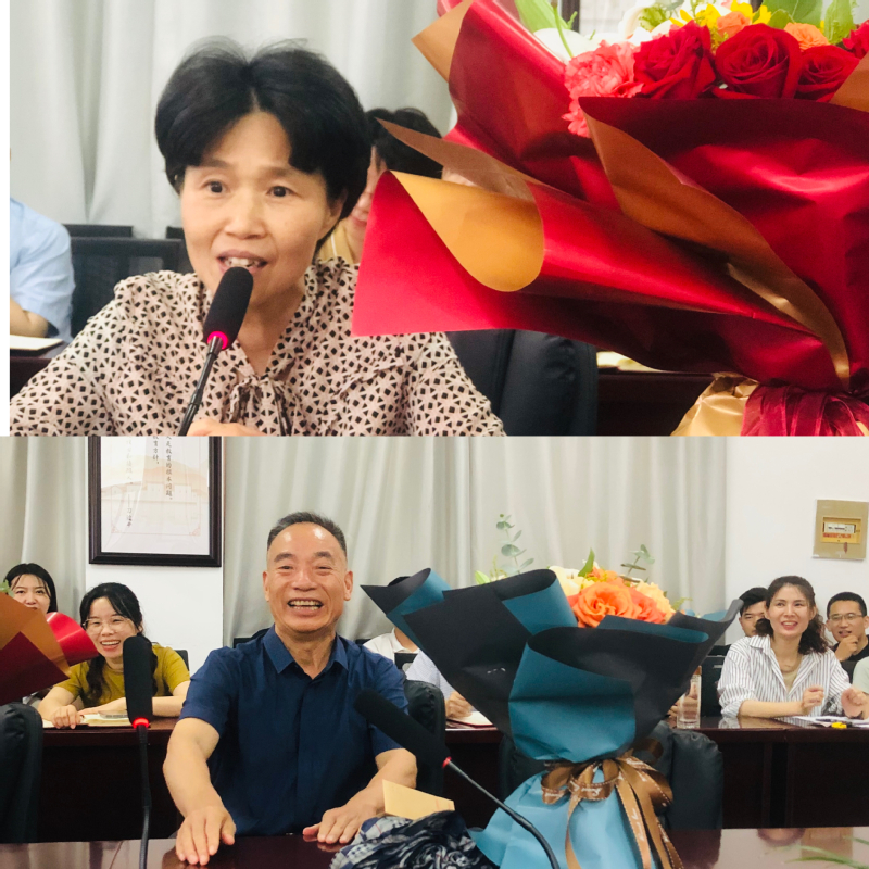 本网讯 倾尽丹心育桃李,立德树人溢芬芳。为发扬关心关爱退休教师的优良传统,感谢他们几十年如一日为学校、学院发展作出的无私奉献,增强老教师们的组织归属感和退休仪式感,进一步激励青年教师学习老一辈、奉献新时代,6月29日,公管学院举办江亚丽老师、王国存老师光荣退休仪式。学院领导班子成员及全体教职工出席仪式。
