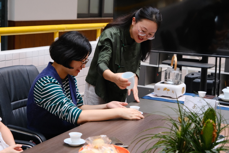 静品光阴,茶韵悠然。活动在茶的芳香中拉开帷幕,学院邀请马克思主义学院高级茶艺师张云老师做茶文化交流和茶艺展示,张老师从识茶、品茶、茶道健康等方面详细讲解了茶文化相关知识,介绍了茶盘、公道杯、品茗杯等茶具的用法,示范了洗茶、冲茶、淋罐、洒茶等茶艺技巧。在张老师专业细致的讲解下,大家兴趣盎然积极互动,体验冲泡技巧,习得茶道礼仪,在轻松愉悦的氛围中,共同体验了一次难忘的茶文化之旅。
