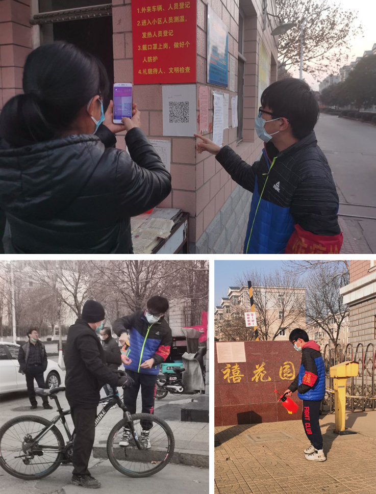 在志愿者工作中,张子扬的主要任务是做到三个“当好”:当好“宣传员”,为所在社区居民解读防疫方法,引导社区居民建立防疫微信群,积极宣传居家防护等防疫措施;当好“保障员”,认真参与巡逻防控、应急值守、消毒清洁等工作;当好“战斗员”,重点参与社区排查,做到出入社区测体温,出入车辆登记,坚决做到一个不落。
